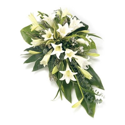 Een klassiek en stijlvol rouwarrangement met één uiteinde met longiflorum-lelies en bladgroen. Een mooi eerbetoon aan een dierbare.