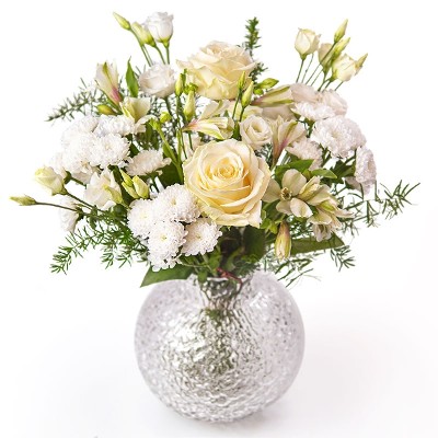 Stuur ons best geprijsde witte bloemistenboeket! Dit elegante en unieke boeket in wit symboliseert eerlijkheid, onschuld en perfectie. Laat onze ervaren lokale bloemist de mooiste lokaal verkrijgbare of seizoensbloemen kiezen om een unieke compositie te maken. Doordat de bloemist geen specifieke bloemen hoeft in te kopen, kan hij de prijs laag houden, krijg jij het voordeligste boeket en de ontvanger elke keer dat je het bestelt een unieke compositie. Onze witte bloemistenboeket is een kwalitatieve maar betaalbare verrassing die ongetwijfeld een win-win is voor iedereen.